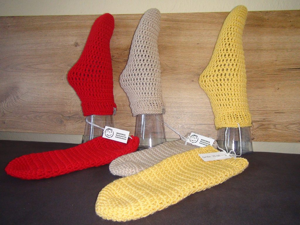 Meinen Gästen zur Freude gibt es nun auch Söckchen. Diese sind in knalligen Farben gehäkelt.